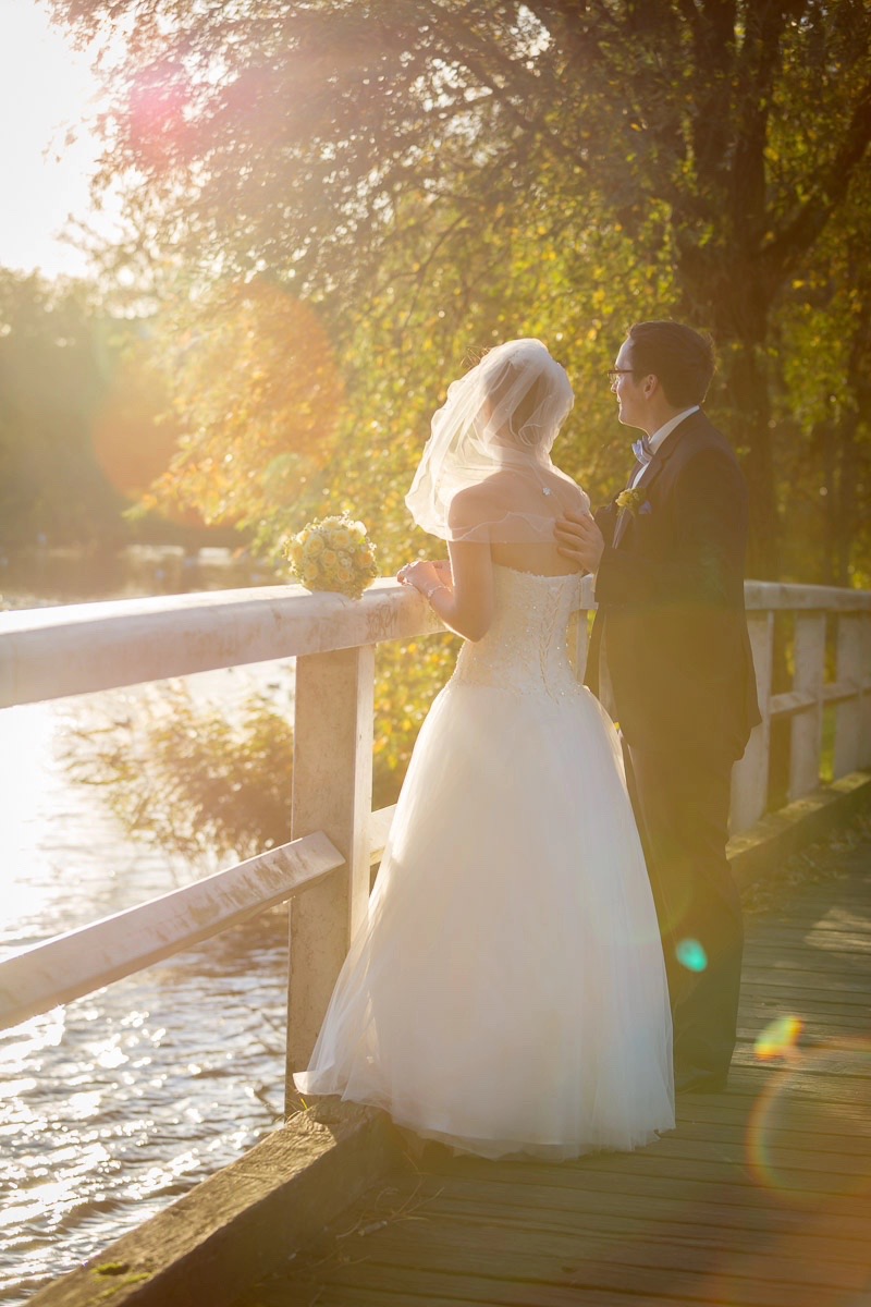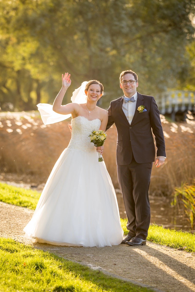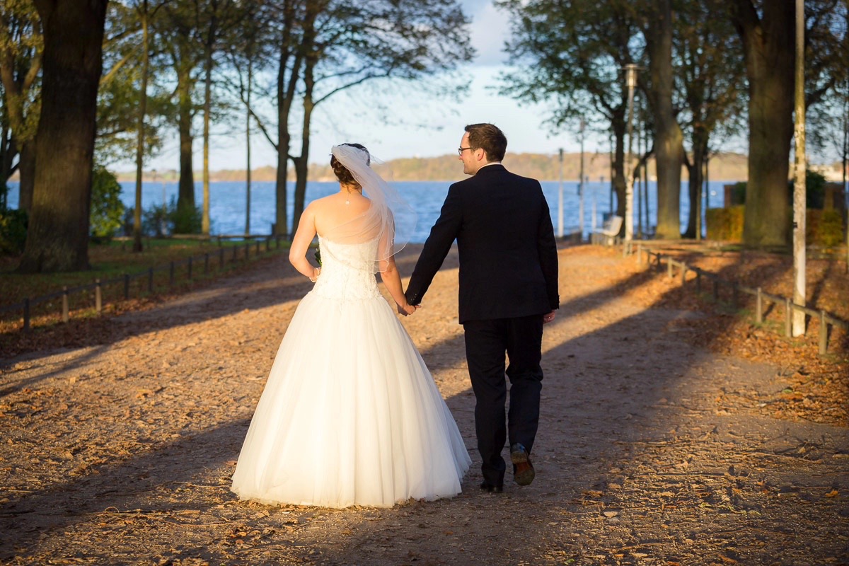 Nach der Trauung gab es Sekt und Spiele für die Gäste und das Brautpaar. Danach folgten Familienfotos vor der Kirche und die nötige Ruhe bei Kaffee und Kuchen im Scheelehof. Während die Gäste den Nachmittag entspannt ausklingen ließen, haben Jana, Julian und ich in die goldene Nachmittagssonne für die Brautpaar-Fotos genutzt. Stralsund bietet dafür unendlich viele Möglichkeiten, nicht umsonst gehört die Hansestadt zum Unesco-Kulturerbe. Die Altstadt, der Hafen, die Stadtteiche mit ihren Brücken, die Stadtmauer… Fotomotive soweit das Auge reicht. Wenn dann noch das Wetter so gut mitspielt und auch das Brautpaar so ausgelassen ist, dann wird die Arbeit für mich als Fotograf zum reinen Vergnügen. Doch seht selbst…