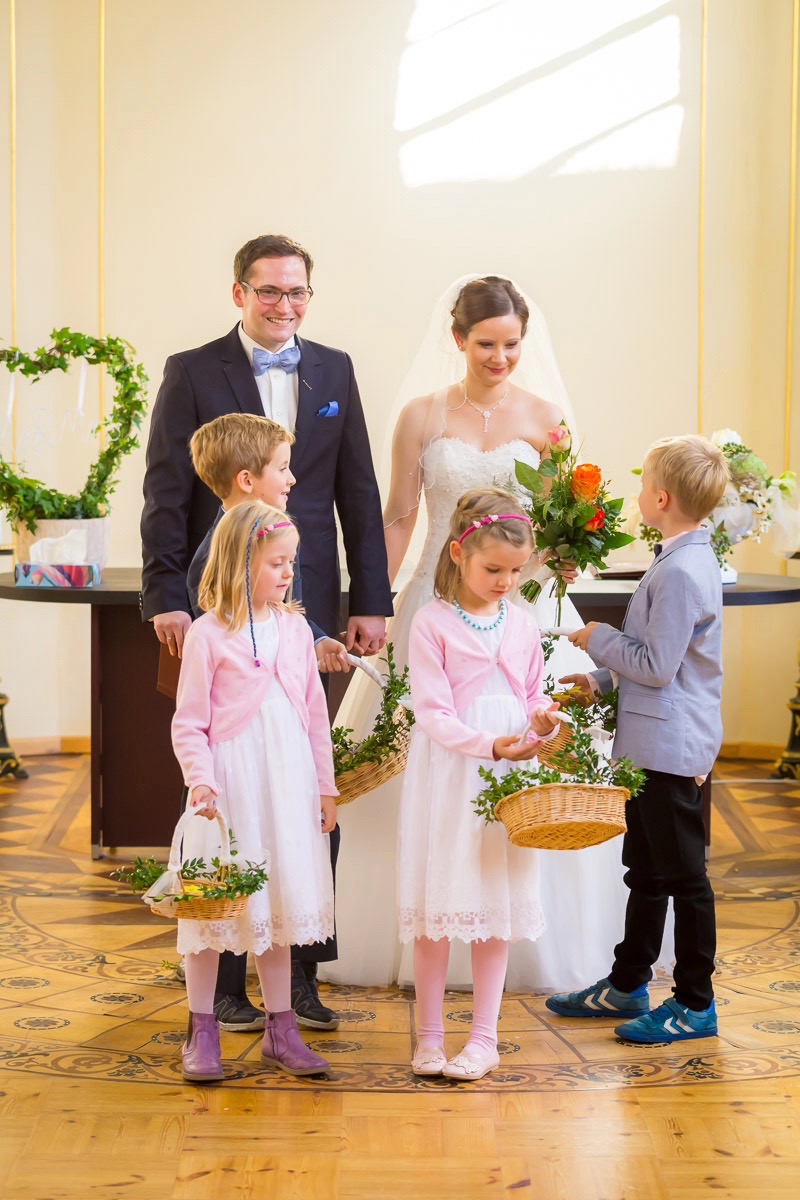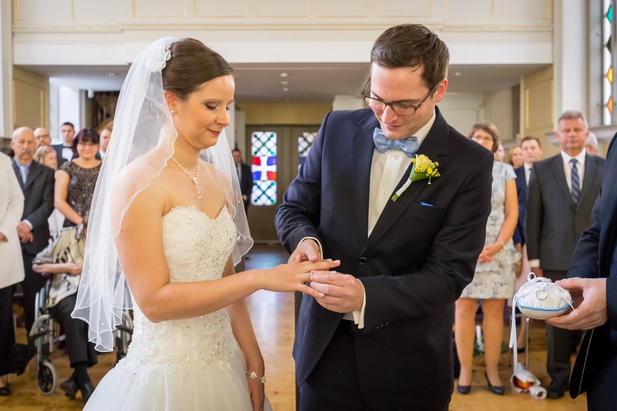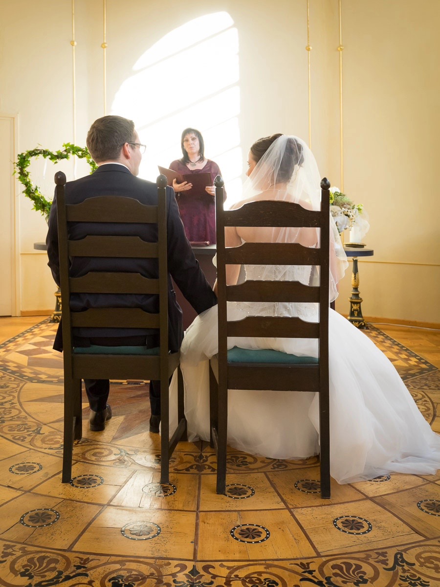 Die Trauung wurde recht versteckt in der Stralsunder Altstadt im St. Annen und Brigitten abgehalten. Diese unscheinbare Kapelle bietet genug Platz auch für große Hochzeitsgesellschaften und hat trotz der standesamtlichen Trauung einen eher kirchlichen Charme.