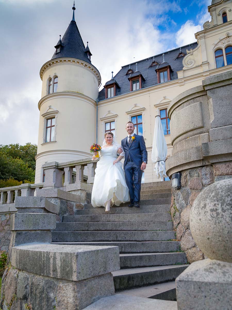 Das Schloss Ralswiek bietet nicht nur einen traumhaften Blick über den großen Jasmunder Bodden und die Bühne der Störtebeker-Festspiele, auch der zugehörige Park ist vor allem im Frühjahr und im Herbst sehr fotogen. Im Herbst diesen Jahres war ich nun als Fotograf für die Trauung von Dorina und Christoph engagiert. Das Brautpaar und ich hatten Glück, denn in einer Woche mit Dauerregen haben wir den einzig guten Tag abgepasst. Doch selbst bei Regen bietet das Schloss im Rahmen der Hochzeit genug Möglichkeiten für schöne Hochzeitsbilder. Nichtsdestotrotz sah ich es als meine Pflicht an, das junge Brautpaar auch in den warmen Farben des Herbstes zu portraitieren. Nochmals vielen Dank an die beiden für ihre Geduld und Hingabe.